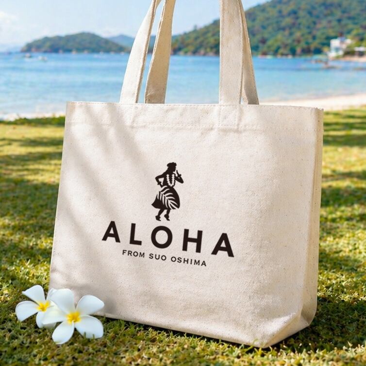 瀬戸内のハワイからALOHAを贈るフラガールデザインのトートバッグです。